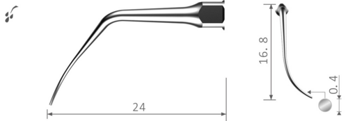 Höger vinklad, används för furkationer, interdental och mycket trånga områden