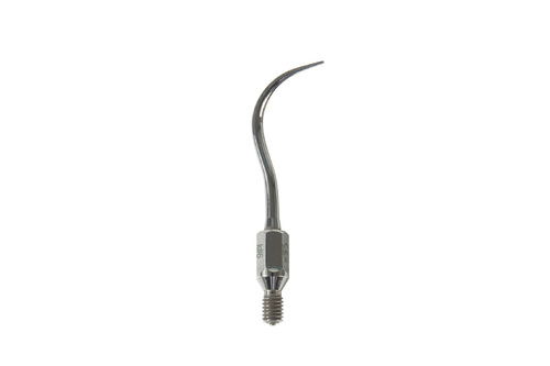 Fin scalerspets, av K-typ, för avlägsnande av tandsten från smala, svåråtkomliga områden. Passande momentnyckel: art. nummer 520485. Längd på spets 10,5 mm.